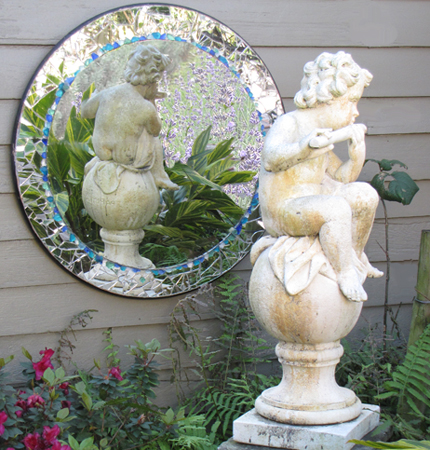I live in New Orleans several months out of the year and most of my mosaic outdoor garden pieces started there behind my 1836 Double Shotgun Cottage where two hundred year pecan trees dropped their fruit to neighbors in reach of their generous limbs. Katrina took them, but they are survived by determined Bougainville, hardy hibiscus, and stubborn banana trees all forming a luscious and inviting scenario for inspiration.